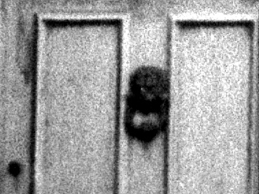This strange optical test seemed as fair as any - with considerable difficulty all three cameras were persuaded to use Orwo NP15 ISO 25 film, and to make exposures at full aperture without over-exposing the film. The doorknocker was positioned first central, then at the long edge position. The centre and edge positions are not exact, especially the edges, which were around 2/3rds out � the viewfinders of these cameras do not show the full field precisely.